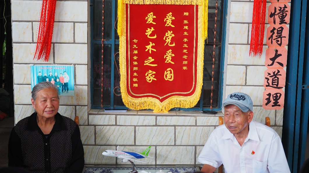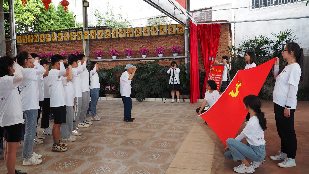 实践团队走进蒙自市新安所镇73岁的老党员张建生家中,鲜红的党旗、国旗映入眼帘,“中国共产党万岁”、“中华人民共和国万岁”这样的标语红色标语随处可见,一个不一样的“红色阵地”逐渐展现。跟随着张建生的步伐,实践队员逐渐了解到张建生的感人故事,张建生成为一名共产党员后,就把“一生为党,做无私奉献的人民勤务员”作为自己的责任和使命,他对工作充满热情,用群众喜闻乐见的方式宣传党的路线方针政策,弘扬主旋律,传播正能量。从工作岗位上退下来后,他依然心系党的事业,尽自己最大的能力传播党的声音,花了近10年的时间,亲手把自己家打造成一个“红色阵地”,在近150平方米的小院里,有“农家书屋”、有“盛世桃园”、有“实践广场”。院子里的任何摆设、物件也都有着特别的寓意,竹子象征坚韧不拔、无私奉献,石榴象征各民族像石榴籽那样紧紧抱在一起。张建生自豪地向队员们介绍到,2020年7月,政府来家中挂了两块牌,一块是“农家新时代文明实践教育培训基地”,另一块是“农家书院”,最近又挂了一块牌,叫“家庭党校”,说明“红色阵地”建对了!