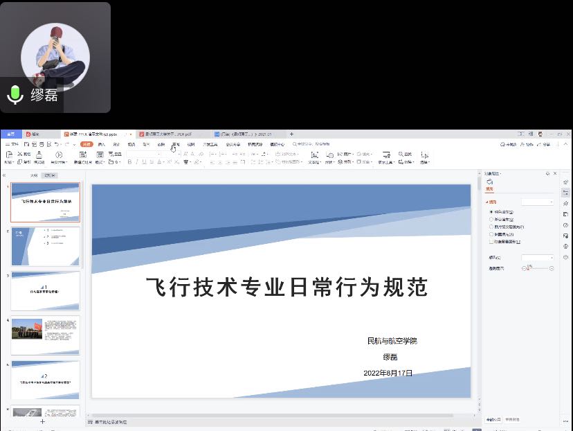 (五)行为督导篇:本篇章的培训分为两个部分:一、学校资助、奖励办法、勤工助学等相关政策讲解。二、飞行学员准军事化管理等,引导学生养成良好的学风、 作风习惯。