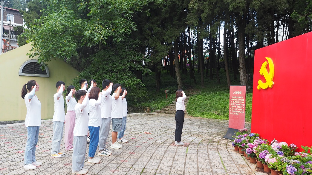 在中国共产党云南第一次代表大会会址前,实践团队党员队员在面对鲜红的党旗,重温了入党誓词,用铮铮誓言砥砺初心使命,坚定党员队员们的党性和理想信念。