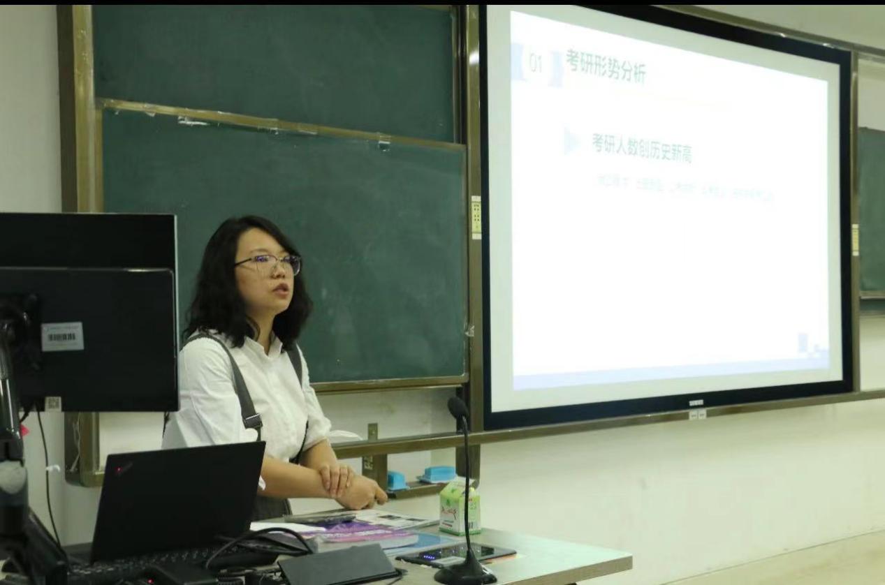 讲座中,王老师从2024考研形势、专业院校选择、如何平衡学校正常学习和考研等多个角度为同学们做了详细的指导和讲解。王老师首先提醒同学们考研一定要提前做好准备,不要打无把握的仗。然后,王老师鼓励同学们要结合自己的实际情况选择报考院校,不要盲目跟风,理清考研与就业的关系,合理定位,理性报考适合自己的专业和院校。最后,明确考研目标,制定详细的复习计划并持之以恒地朝着目标努力。