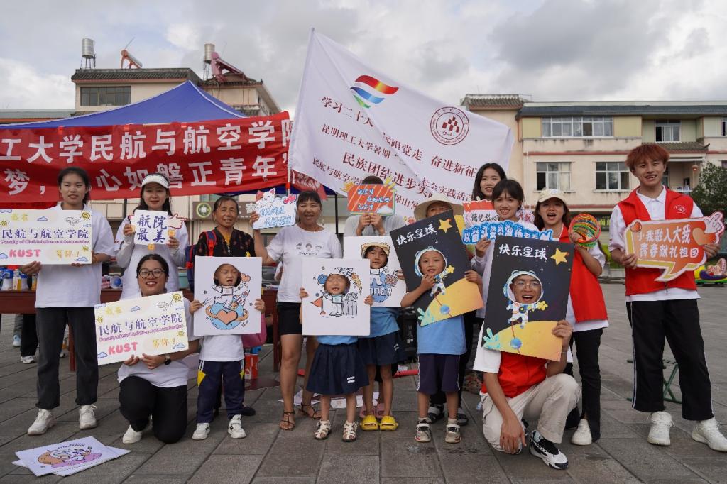 星空浩瀚无比,探索永无止境,建设航天强国,是我们不懈追求的航天梦。一代代航空人忠诚奉献,逐梦蓝天,让“战神”腾飞、“飞豹”冲天、“鲲鹏”展翅,航空梦的种子在荒芜的土地上绽放了绚丽之花,而出生在一名普通家庭的桂海潮,就是在这颗航空绚丽之花的影响下,成为了一名优秀的航天员。7月3日,HEYZO 2023暑期“三下乡”社会实践团队联合马克思主义学院赴保山市与共青团施甸县委共同组织开展,开展了以“以星空为开端,开启航空幸福公益集市”主题活动,向施甸县姚关镇人民群众普及航空知识。