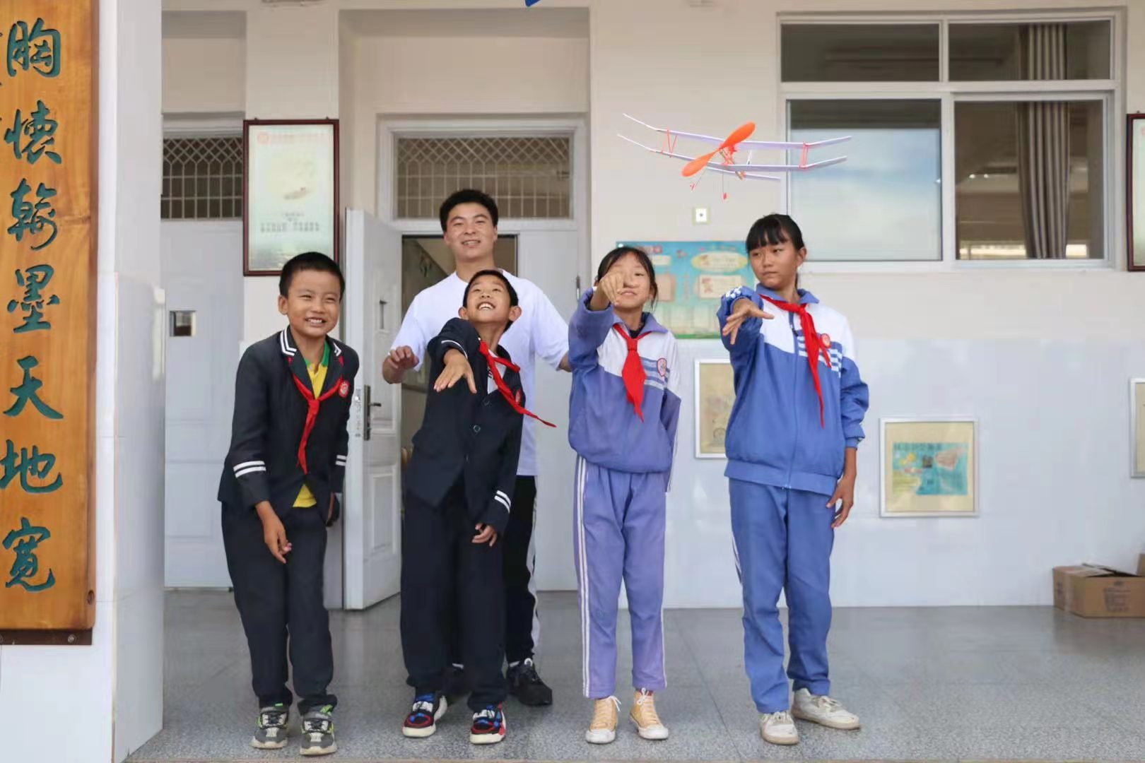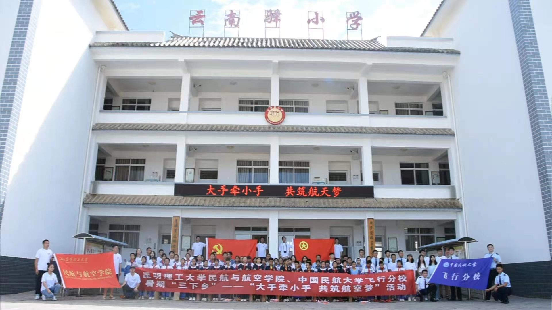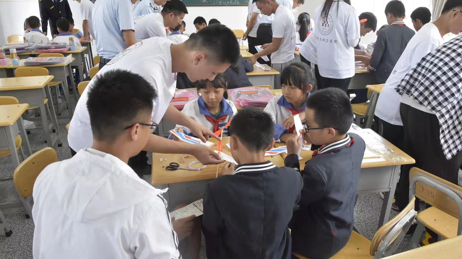 7月22日下午,HEYZO 、中国民航大学飞行分校、昆工马院2021暑期“三下乡”社会实践团队深入到祥云县云南驿小学开展“大手牵小手,共筑航空梦”主题活动。活动以航空知识普及、种植航空梦为主线,大学生和小学生一起制作航模、体验模拟飞行乐趣、飞向蓝天的快乐。