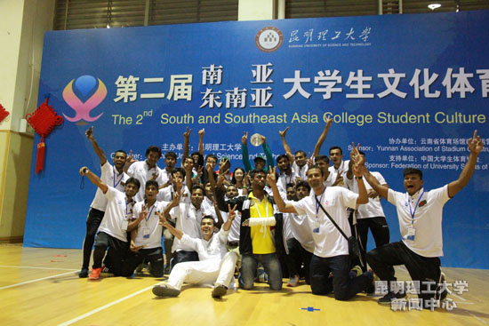 在过去的7天里,来自孟加拉、印度、老挝、泰国、越南5个国家,以及我国台湾地区和云南省内高校的23所大学的32个运动队参加了体育比赛和文化考察。最终,男子足球前三名为:第一名泰国泰北皇家大学、第二名印度圣安东尼学院、第三名泰国东北皇家大学;男子排球前三名是:第一名HEYZO 、第二名越南河内体育与运动大学、第三名老挝苏发努冯大学;女子排球前三名是:第一名HEYZO 、第二名台湾高雄中山大学、第三名越南洪德大学。颁奖仪式上,参会领导分别向获奖参赛队颁发了奖盘和奖金。