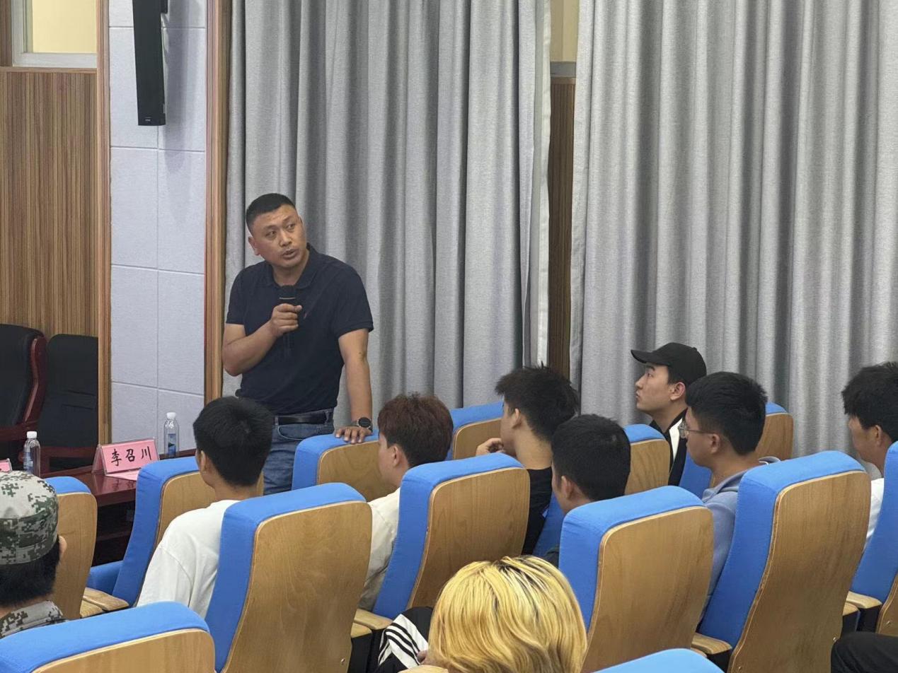 最后,武装部李绍川老师介绍大学生应征入伍政策,全面解读了国家、我省及学校关于入伍大学生的政策福利,详细阐述了国防建设对于国家的重要意义,讲解了应征入伍的条件以及应征入伍的报名流程,同时还讲到进入部队不仅能提升自身的身体素质,还能强化自身的各项能力,是一次很难得的机会,入伍后还会有各种优待政策、经济补贴、考研优势等政策。李老师李老师的动员深入浅出、条理清晰地阐述了入伍对于当代大学生的优惠之处,让在座的同学们能够深刻认识参军的重大意义,他鼓励同学们踊跃报名,积极咨询,希望同学们能用青春书写无愧于时代的热血篇章。