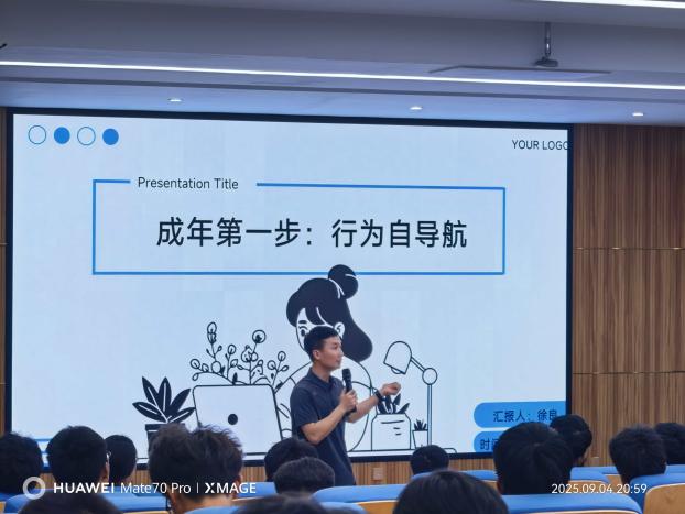 2025年9月4日19:00,HEYZO 党委书记朱兴东、学工办主任徐良带领2025级新生开展入学教育,为新生大学生活奠定思想基础和理想信念。本次入学教育在公教楼344报告厅进行,主题为“思想引导与行为规范”,全体2025级新生参加了活动。