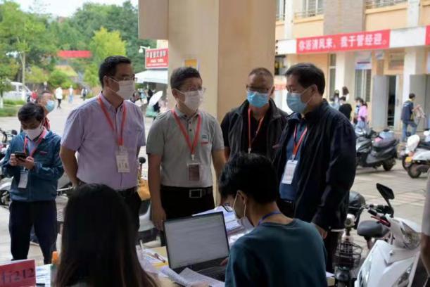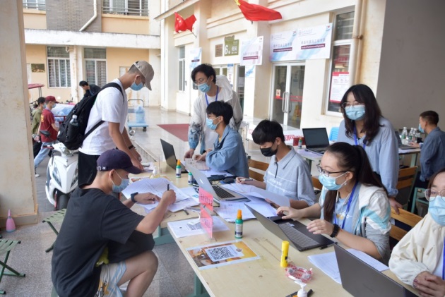新生报到处,学院党政领导、辅导员、班主任带领迎新志愿者,细致地办理各项新生报到手续,耐心解答新生专业咨询、学生教育管理等相关问题,迎新各项工作有条不紊地进行。