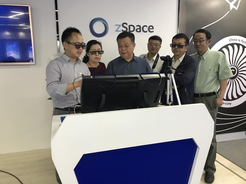 调研组一行认真听,一边认真参观了学院机场通航模拟签派实验室、航空发动机zSpace虚拟仿真实验室、无人机铂骏创客中心、赛斯纳飞行模拟实验室和直升机动态飞行模拟实验室。