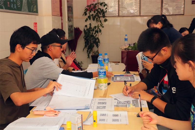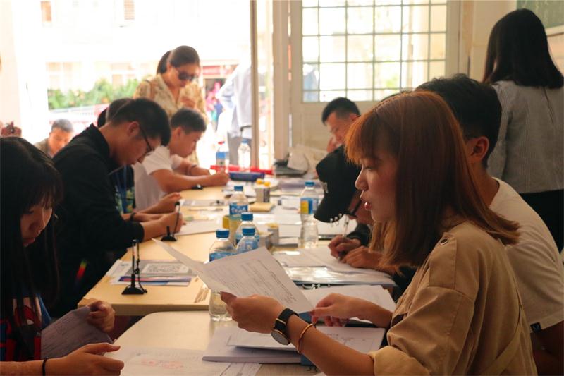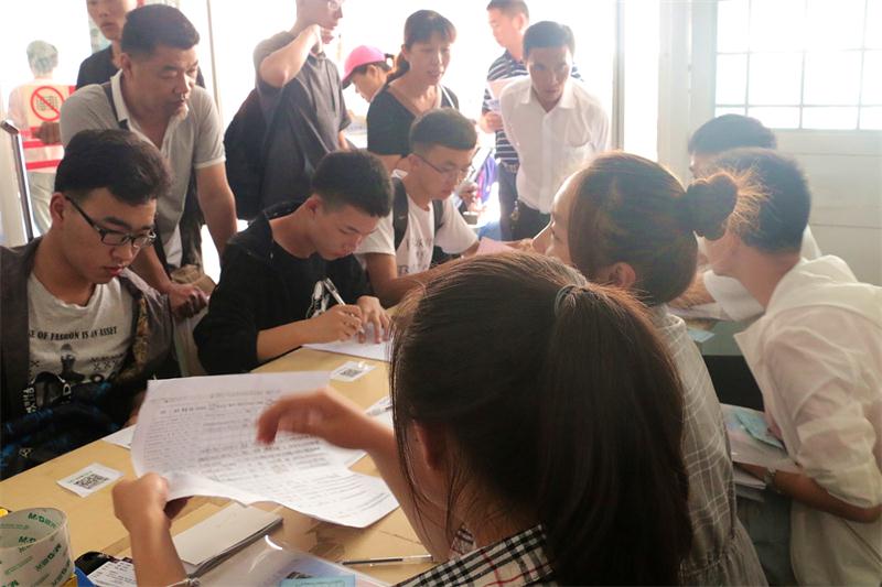 人虽然多,但是迎新工作还是有条不紊的进行着。学长学姐们熟练的指导新生报到,不厌其烦的为新生们解答各种困惑,各个专业的班主任也亲自来到报到现场,在新生报到时,各个班主任关切的和新生及家长交流,并指导新生报到。