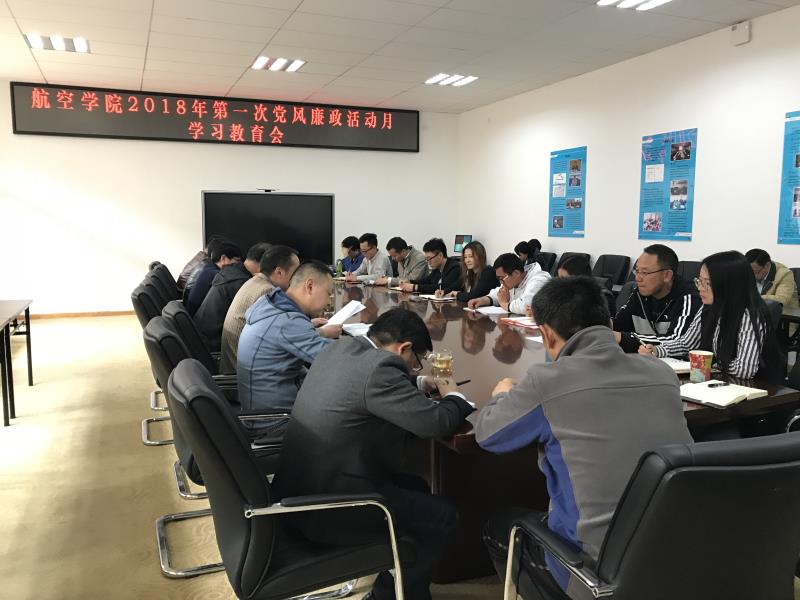 4月19日下午,航空学院在335报告厅开展2018年度第一次党风廉政活动月学习教育会,学院党政领导出席会议,全院教工参加学习教育。