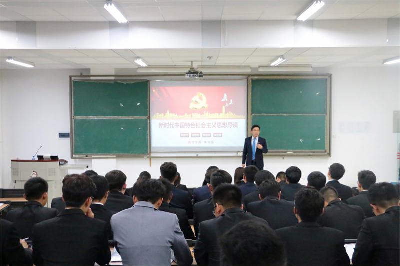 第一堂课,由航空学院直支副书记朱兴东老师主讲,朱老师就新时代中国特色社会主义思想给同学们做了导读,为同学们介绍了新时代中国共产党的历史使命、新时代中国特色社会主义思想的基本内涵和决胜全面建成小康社会、开启建设社会主义现代化国家新征程等内容。