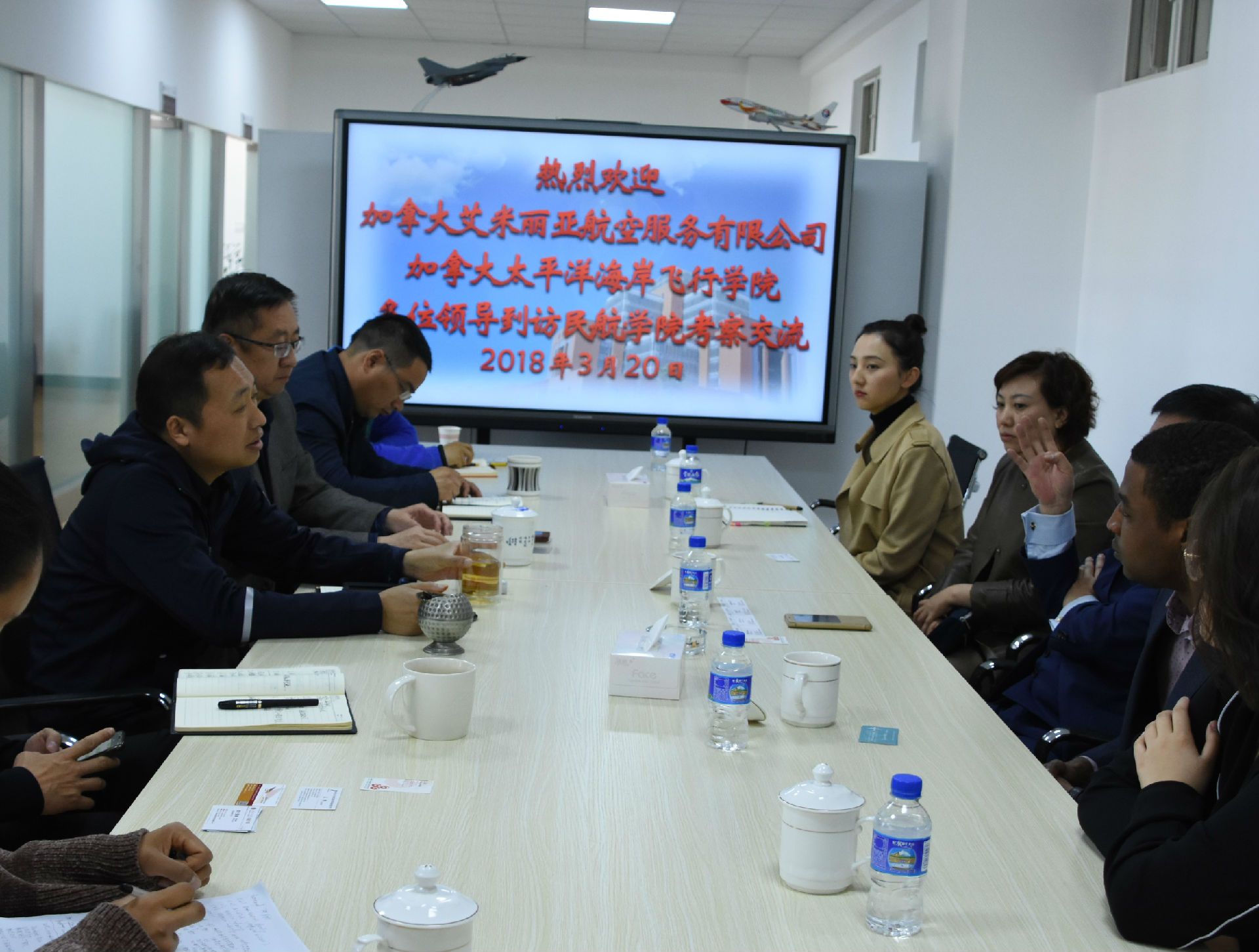 姜宁董事长、杨芸总裁分别介绍了太平洋海岸飞行学院的办学情况,加拿大高校和国内高校开展民航专业联合培养、教育培训的现状。