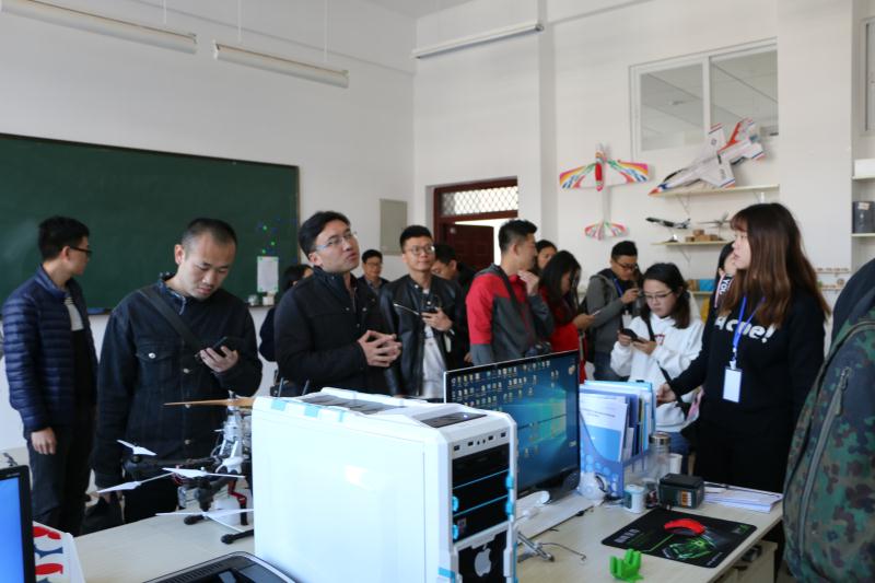 学院副书记朱兴东、综合办主任阳照冬,铂骏创客工作室负责人赵成俊分别带领各位记者参观了学院航空文化长廊、“飞虎雄风”抗战展厅、云南航空教育发展史陈列馆和铂骏创客无人机研发中心,对世界、中国航空文化发展史、云南航空教育史,云南航空抗战史以及目前学院无人机、三D打印机研发项目进行了阐述和说明。各位记者一边认真看,一边认真听,不时还拿出手机拍照后进行网络直播。