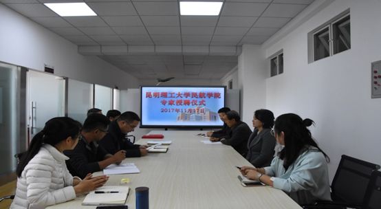 11月17日,民航学院在电力楼606会议室举行仪式,聘请空军特级飞行员、飞行训练专家宋占国,昆明广播电视台著名主持人朱智勇,飞机发动机研究和维修专家曹联营等3位专家为教学督导和兼职教授。聘任仪式由学院直支副书记周业林同志主持,院长刘增力教授向受聘的3位专家颁发了聘书。
