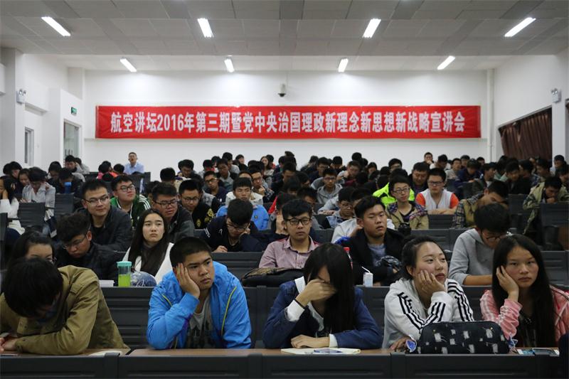 作为航空讲坛2016年第三讲主讲嘉宾,殷教授紧紧围绕全面从严治党、全面建成小康社会、全面深化改革、全面依法治国等方面,对十八届六中全会精神和习近平总书记治国理政新理念新思想新战略进行了解读。一是解读党的十八届六中全会精神,全会正式提出“以习近平同志为核心的党中央”,是众望所归、正当其时;审议通过《关于新形势下党内政治生活的若干准则》和修订后的《中国共产党党内监督条例》,对于深化全面从严治党,解决党内存在的突出矛盾和问题具有十分重要的意义。二是讲述习近平总书记治国理政新理念新思想新战略,围绕“一条主线、两个奋斗目标、三个价值观引领精神文化道德建设、四个全面战略布局、五位一体”,从政治、经济、文化、军事等四个方面论述治国理政等方面,讲述理论内涵与现实意义。三是结合HEYZO 开展的“两学一做”活动和航空类专业特点,从“为什么学、学什么、怎样学”等方面切入,讲解学习党的理论知识的重要性,具体分析了学习习近平谈治国理政思想与同学们的密切联系。勉励航空学院同学从大学开始要观大势、立大志、担大任,为自己成长做好准备。