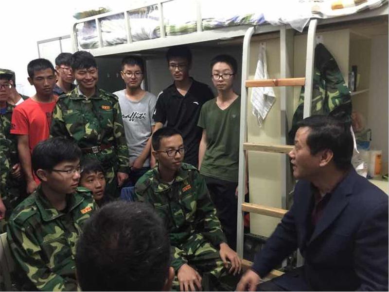 易副校长首先向同学们分享了自己学生时代军训时的经历和感受:军训很苦很累,但也是人生中难忘的宝贵经历,希望同学们要敢于吃苦,相互帮助,相互鼓励。在走访参观学生宿舍时,易副校长仔细询问学生情况,昆明气候是否适应、饮食是否习惯、大学生活如何安排等,瞬间拉近与学生之间的距离。易副校长同时要求,同学们要珍惜自己的大学,心存大志,刻苦努力,学好专业,善待同学,成为航空领域的高级人才。