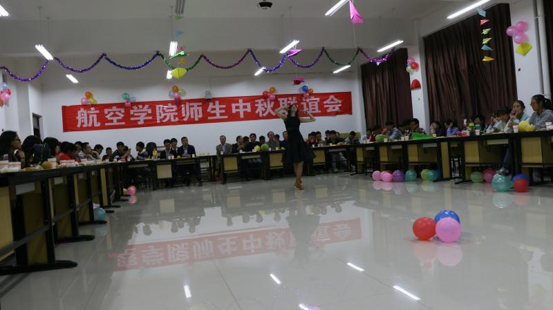 9月13日19:00,航空学院党政领导、辅导员以及各班主任到各个班级,与同学们话谈中秋、话谈大学生活、话谈人生理想。联谊会中或热情似火或沉静如水的表演中飘荡着老师们和同学们的欢声笑语,有刘增力副院长、阳照冬老师献唱的歌曲,也有熊曼辰老师精心准备的拉丁舞蹈,有同学精心编排的相声、小品、二人转、大合唱等,气氛十分热烈活泼。