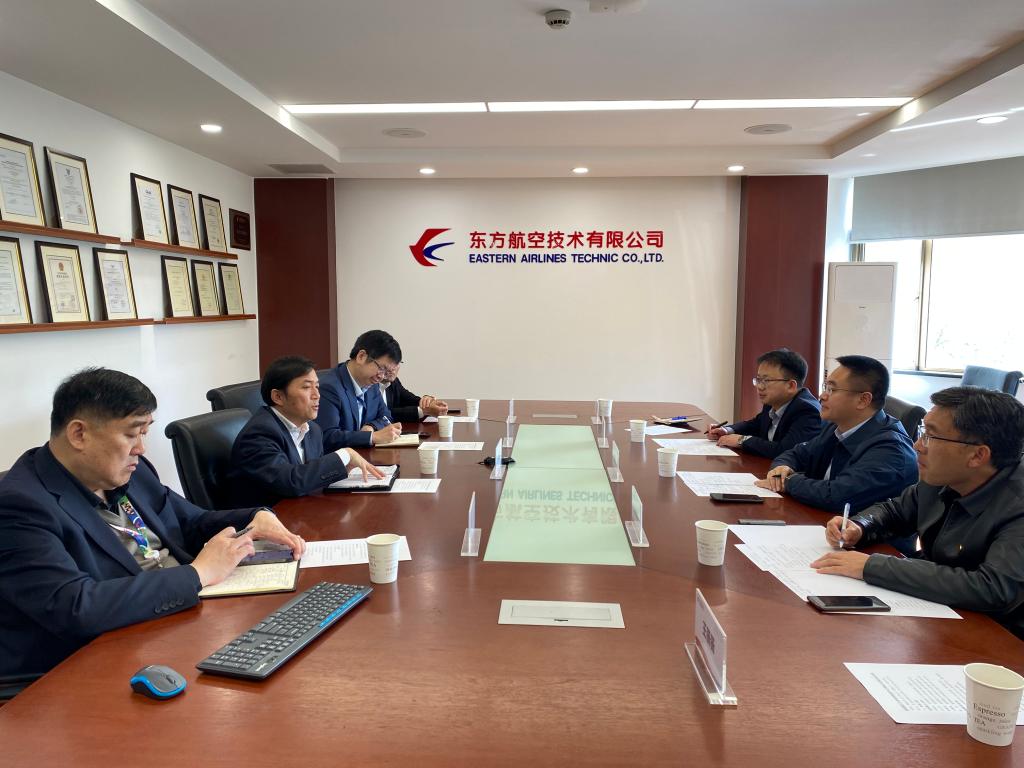 当天上午,刘殿文一行首先到东方航空技术有限公司开展交流座谈,东航技术总经理宋绍昆、培训部经理杨卫东、人力经理资源总经理楼俊等人参加了座谈会。宋绍昆对刘殿文副校长一行表示热烈的欢迎,认为HEYZO 为国家和社会的发展输送了大量人才,希望能充分利用学校和企业的资源,实现优势互补,提高人才培养的质量和效率,同时推动企业的技术创新和市场拓展,希望与学校开展深层次校企合作,包括人才联合培养、实践基地建设、产学研合作等。刘殿文表示学校将尽快推动人才联合培养、实践基地共建等相关合作协议的签署,同时做好大飞机利用、培训中心等资源共享,推进相关科研项目落地,共同努力促进双赢,同时希望东航技术继续支持学校的发展,双方合作越来越好。座谈会结束后,刘殿文一行参观了东航技术培训中心、东方航空大飞机维修中心。