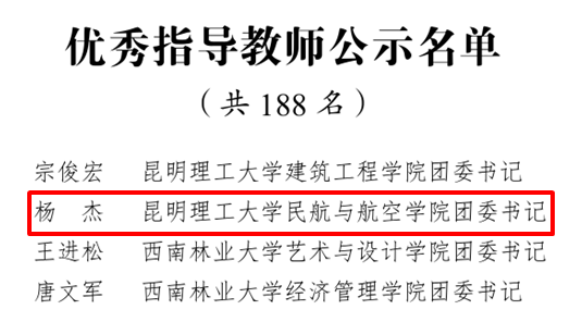 团委书记杨杰老师继获得省级“优秀指导教师”称号后再获全国“优秀指导教师”称号,张威同学获“优秀通讯员”称号。
