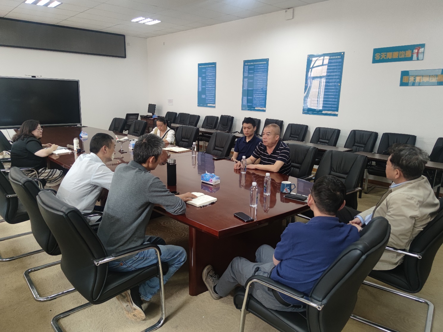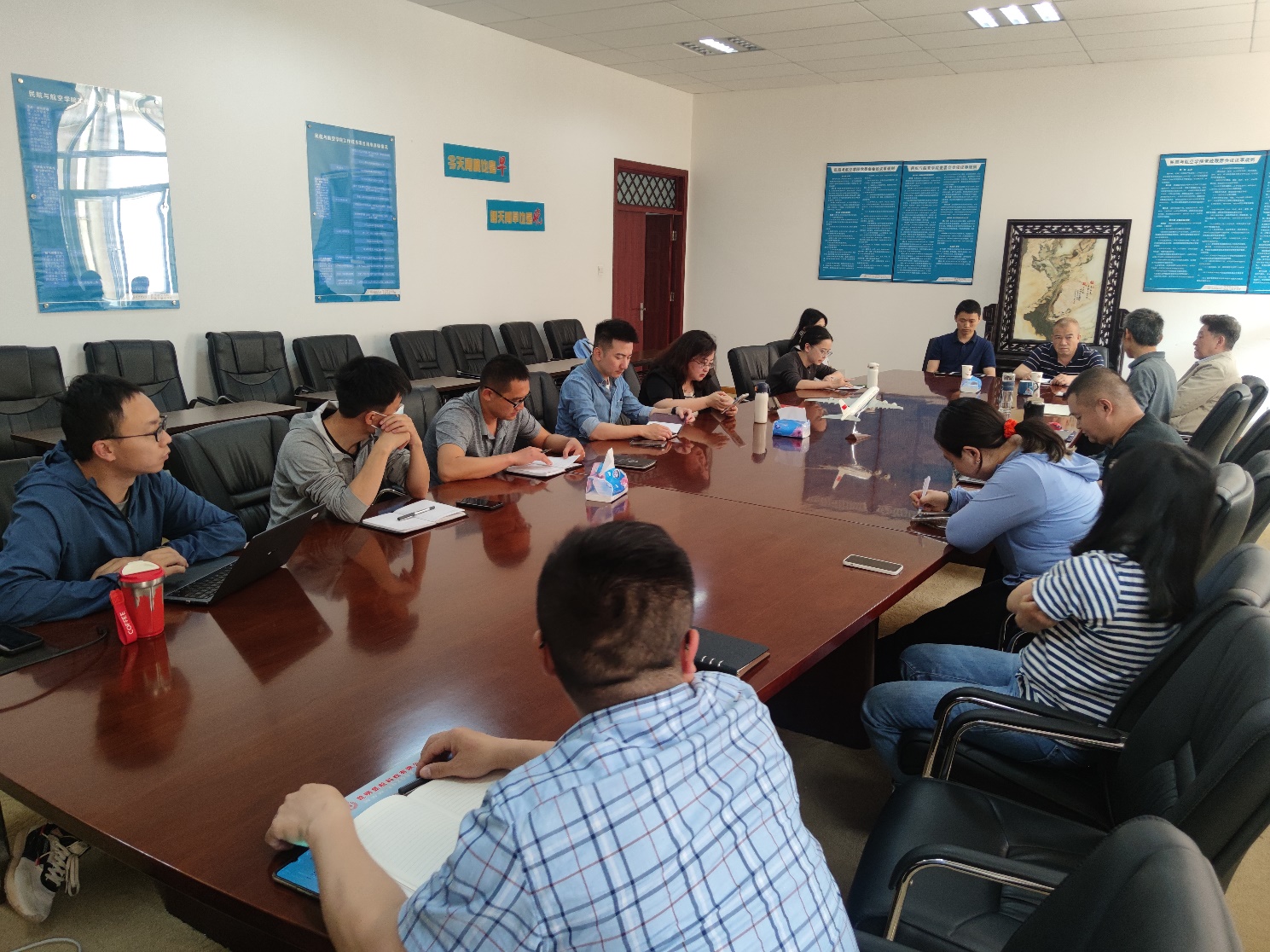 在教师交流环节,飞行技术系全体教师和部分飞行技术专业授课教师与蔚蓝航校到访教员开展了广泛的交流。双方就飞行员日常作风管理、飞行员培养质量、航理学习、英语能力培养、专业课程设置和教学大纲的确定等方面进行了深入的讨论交流。卢老师针对私商仪理论课程设置、局方考试要点、ATPL局考改革后的教学方案设计等进行了经验分享。杨老师针对英语教学在航理学习阶段的目标、ICAO考试900句复诵中易出现的问题,以及英语教学的侧重点等进行了分享。
