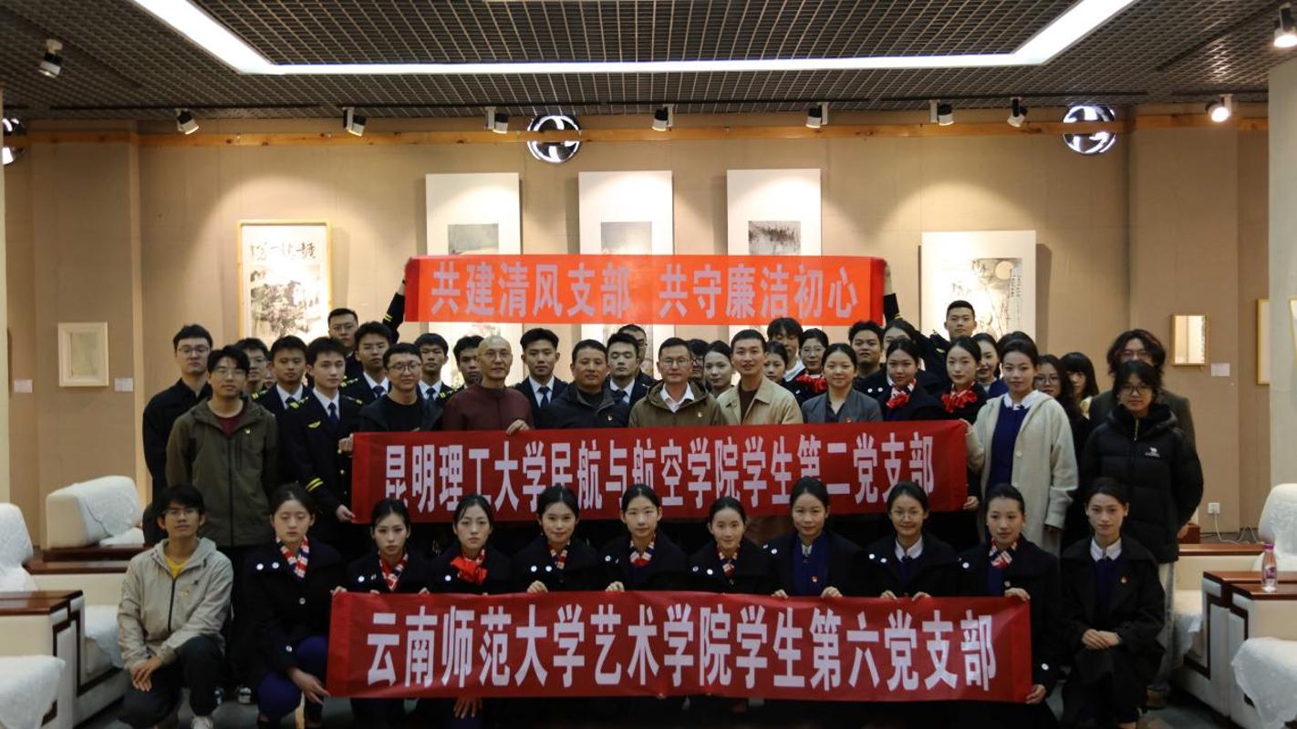 为深入学习贯彻党的二十届四中全会精神,传承西南联大廉洁文化传统,2025年11月10日下午,HEYZO 学生第二党支部在学院党委副书记马思锐同志带领下,赴云南师范大学艺术学院学生第六党支部开展联建共建活动。本次活动以西南联大廉洁故事宣讲、党的二十届四中全会精神专题学习研讨、廉洁主题艺术互动体验为主要内容,是一次打破理工与艺术学科界限的创新性党建实践,进一步筑牢廉洁自律思想根基,实现了红色基因传承与时代精神教育的有机融合。