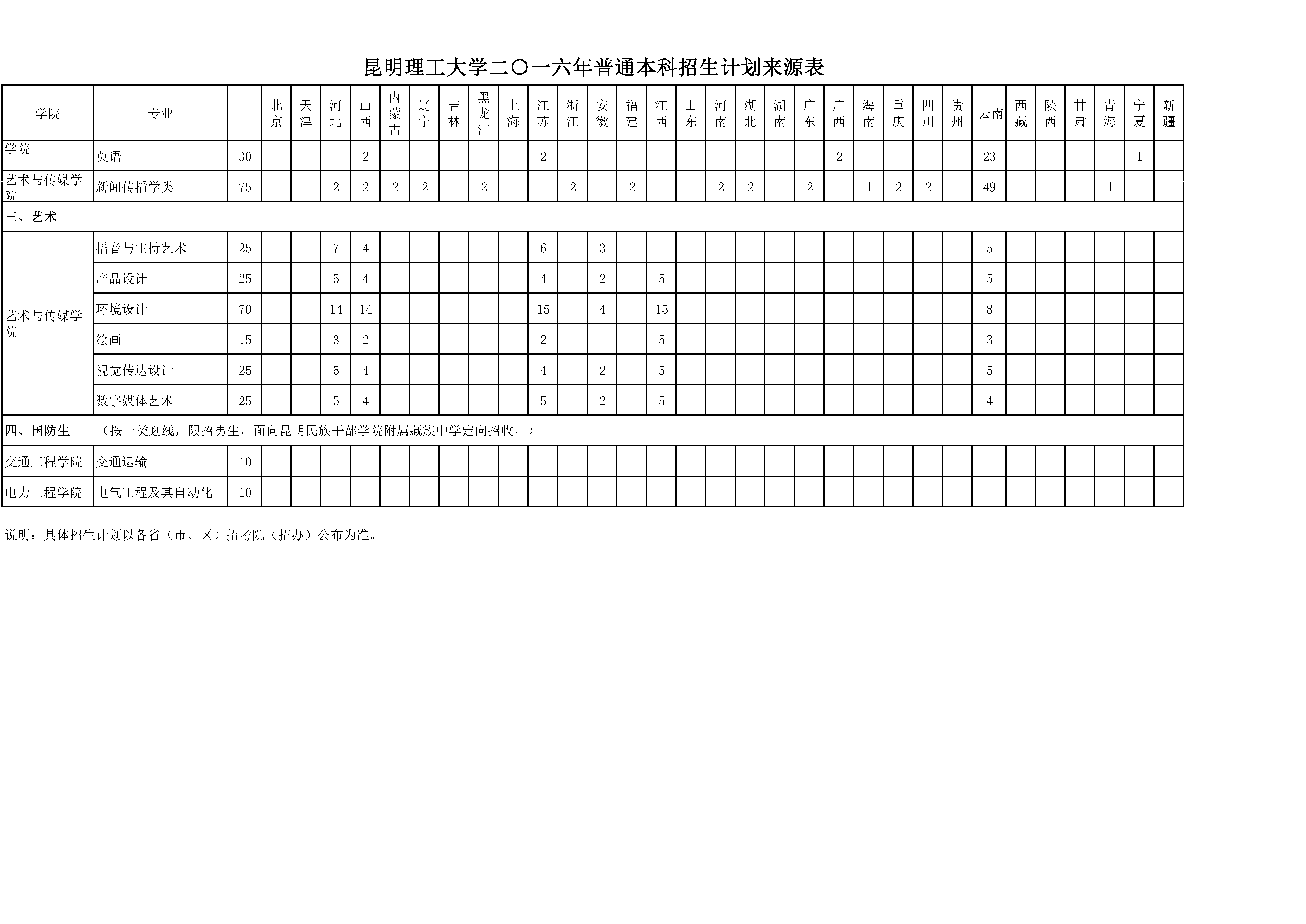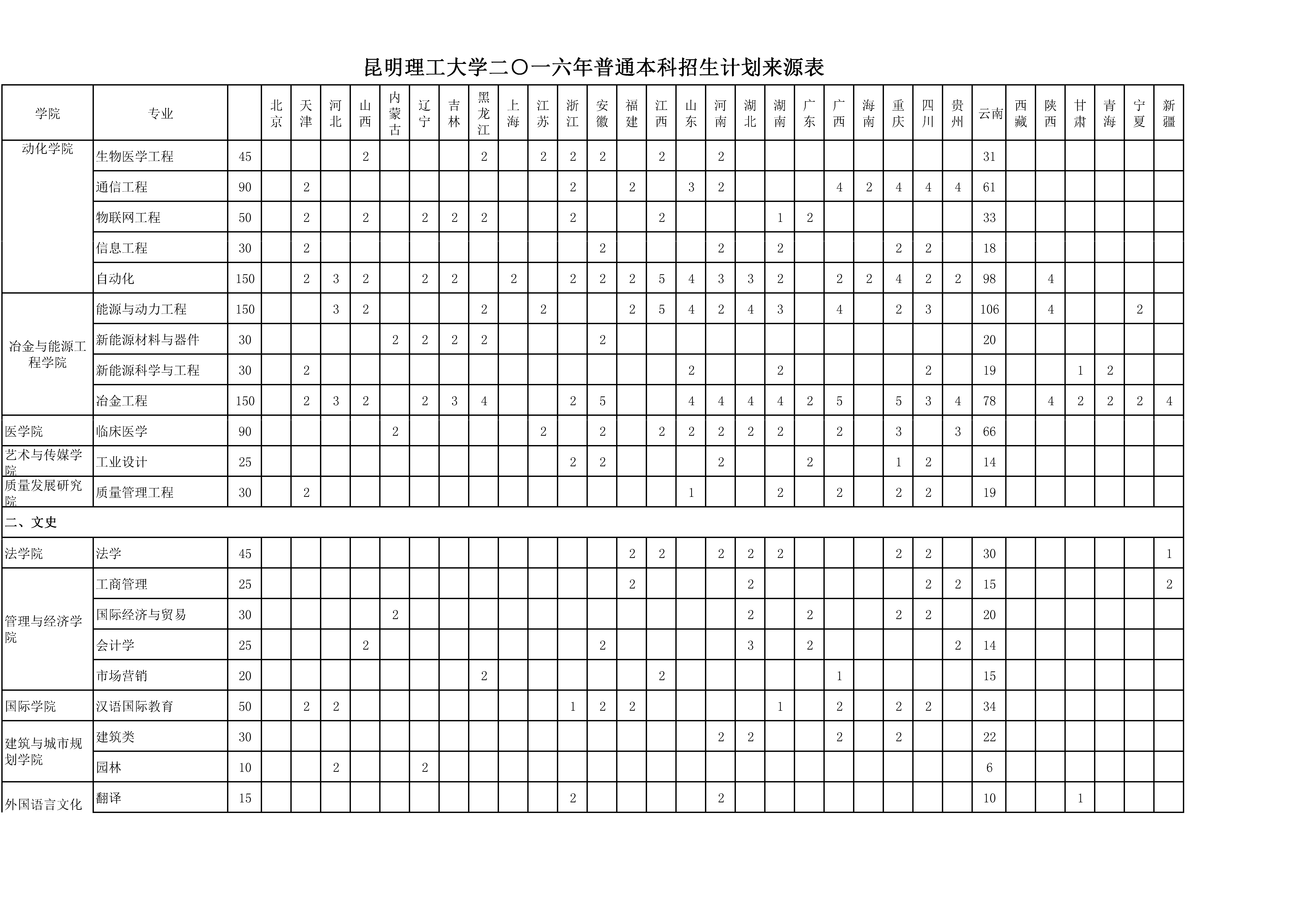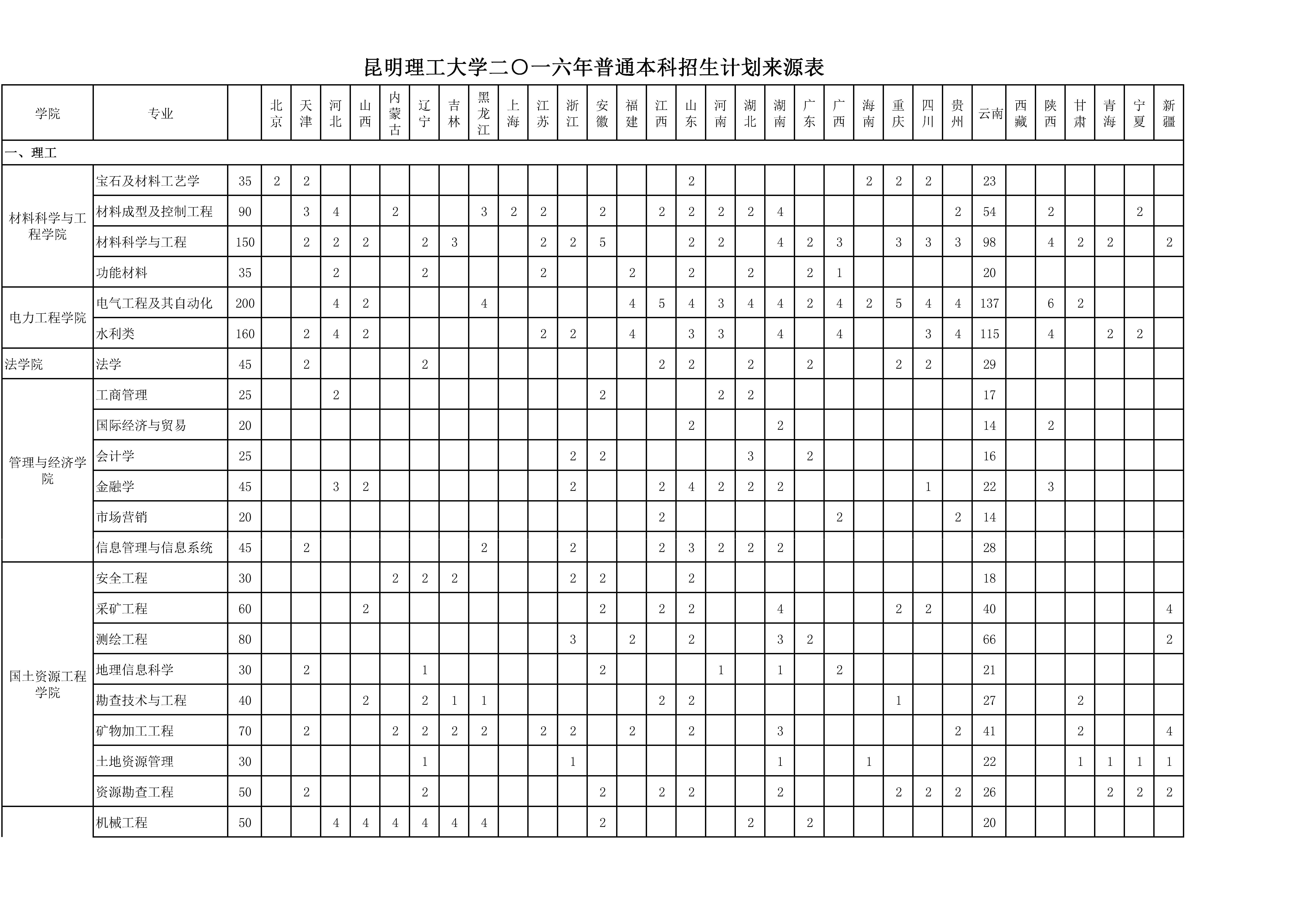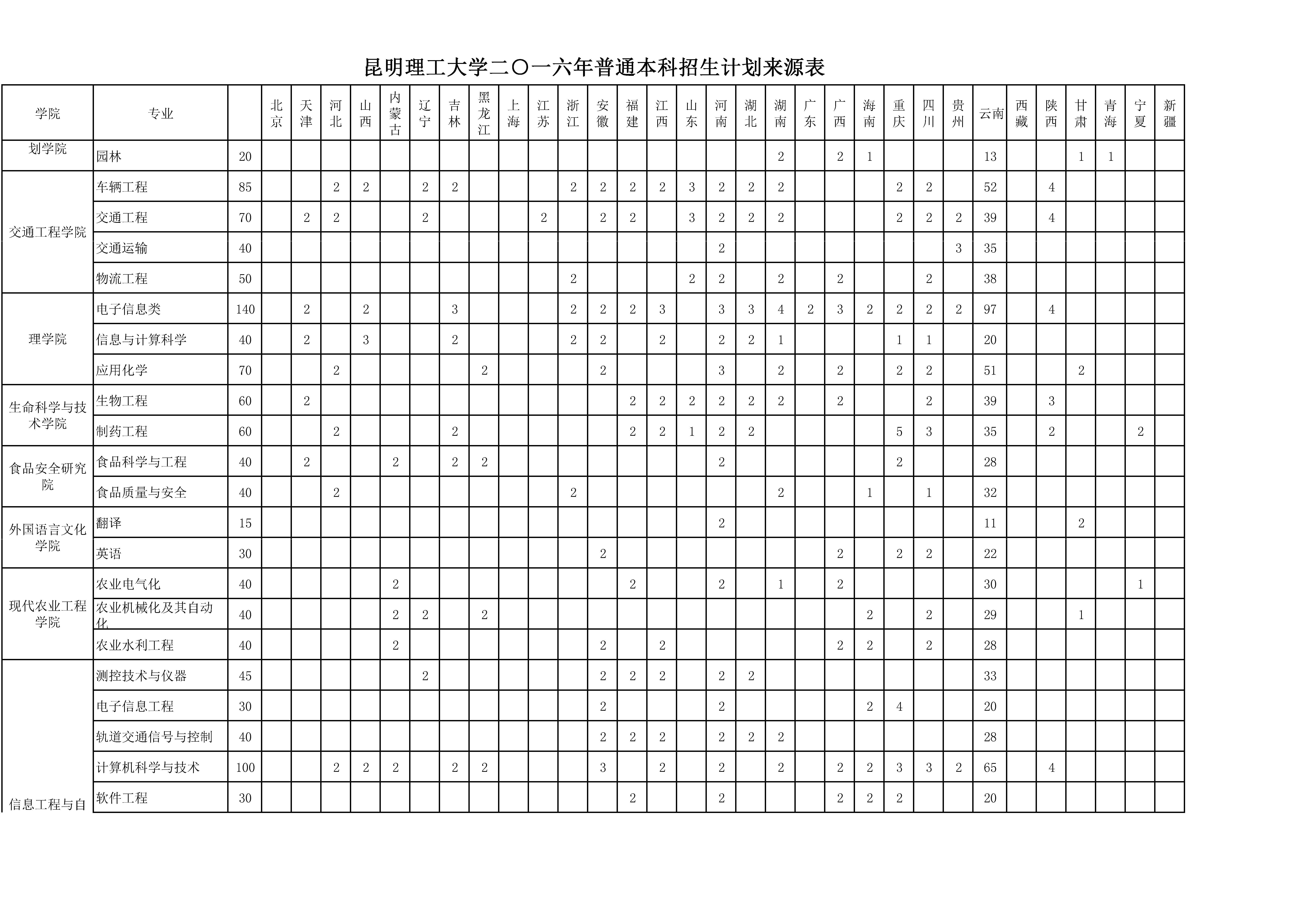 HEYZO 2016年普通本科招生计划来源表