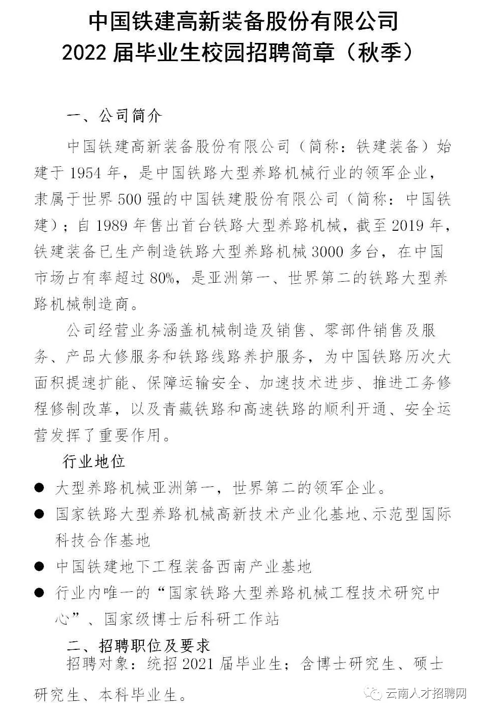 2022年中国铁建高新装备股份有限公司招聘