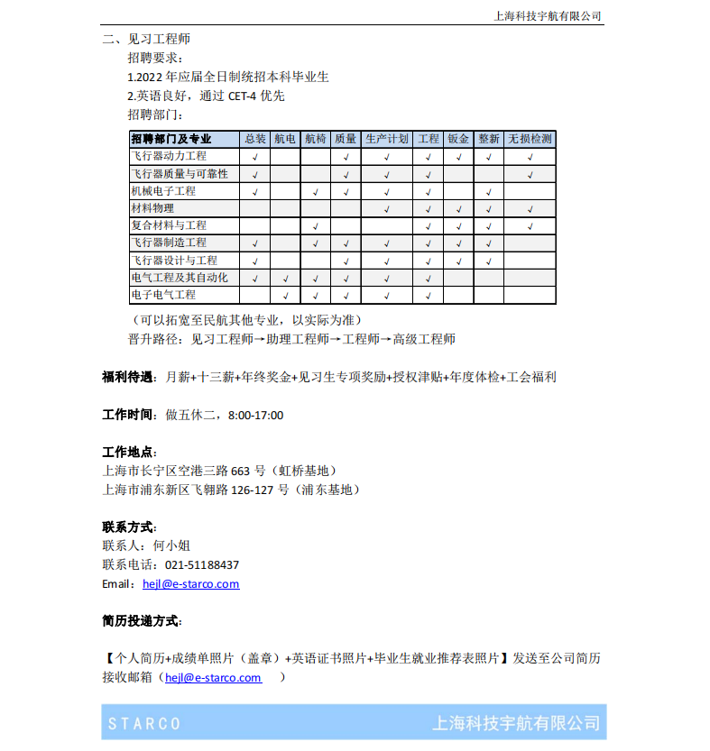 上海科技宇航有限公司招聘简章