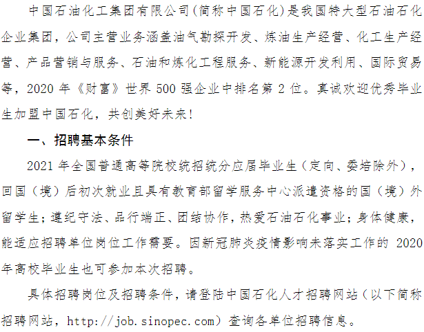 招聘公告详细内容请登录中国石油化工集团有限公司网站查询。
