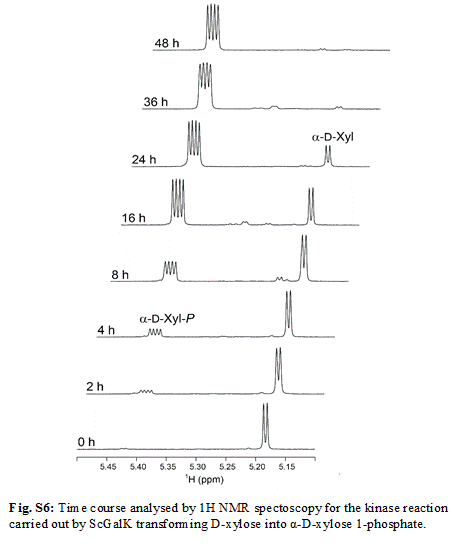 该研究还发现,ScGalK催化木糖磷酸化反应可用于替代木糖化学法合成中的化学磷酸化步骤,立体选择性地合成纯的α-端基木糖-1-磷酸,而不是α-和β-两种构型的混合物。