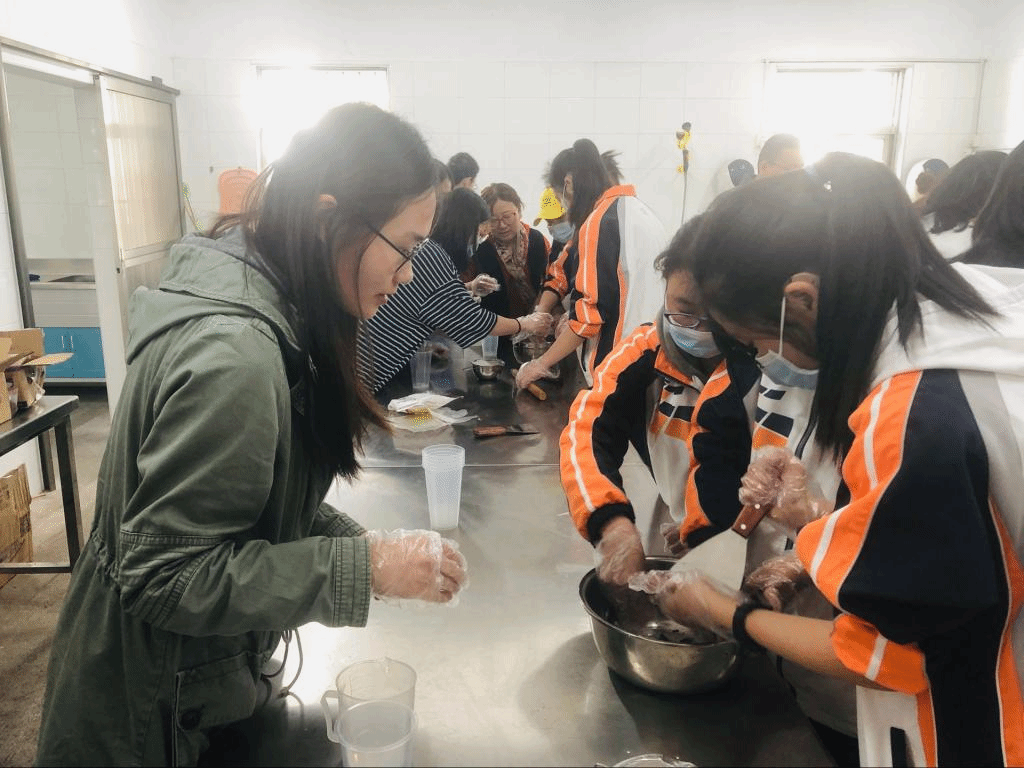随后志愿者陪同聋校师生前往小工厂,讲解食品安全知识,共同完成芋圆奶茶的制作。