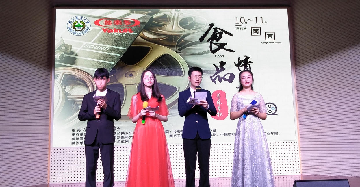 2018年11月3日晚6:30,养乐多杯南京农业大学情景剧大赛于大学生活动中心举办。养乐多(中国)投资有限公司江苏大区区域经理宋文青、养乐多(中国)投资有限公司南京分公司经理袁昊、养乐多(中国)投资有限公司南京分公司营业部部长 耿波、养乐多(中国)投资有限公司南京分公司营业部科长杨崇顺、南京农业大学食品科技学院党委副书记丁广龙、公共管理学院研究生辅导员曹夜景、生命科学学院本科生辅导员王哲、食品科技学院本科生辅导员周凌蕾出席本次大赛并担任评委。全校300余名学生参加本次活动。