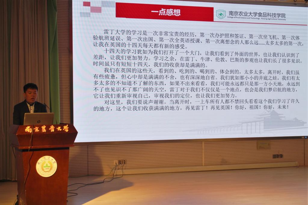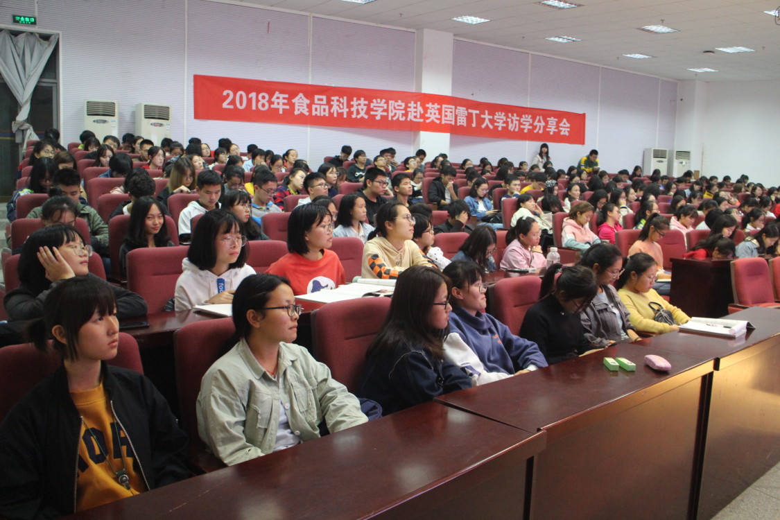10月30日晚,“遇见雷丁”——食品科技学院赴英国雷丁大学访学分享会在教四楼一楼报告厅举行。院党委副书记丁广龙,国际教育学院满萍萍,院本科生辅导员陈宏强等出席会议。20名雷丁大学访学团成员以及200余名本科生参加了此次活动。