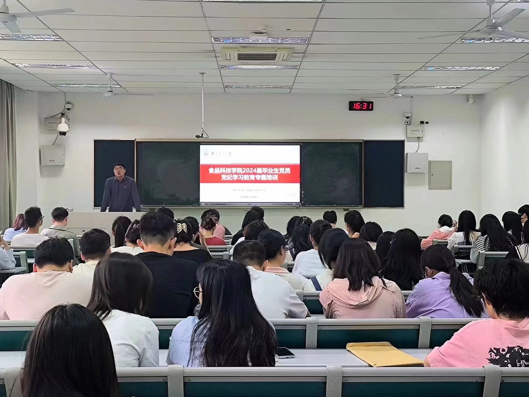为深入推进党纪学习教育走深走实,进一步做好毕业生党员教育工作,5月29日下午,食品科技学院举办2024届毕业生党纪学习教育专题培训活动,学校党纪学习教育宣讲团成员、食品科技学院学工办主任陈宏强作《扎实推进〈中国共产党纪律处分条例〉学习入脑入心》主题分享。学院150位本科、研究生毕业生党员参加此次活动。